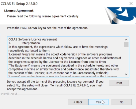 Review the CCLAS Software Licence Agreement, then click Yes to accept the terms and conditions.