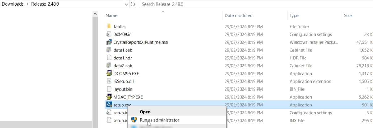 Right-click Setup.exe file and select Run as administrator to display the welcome screen.