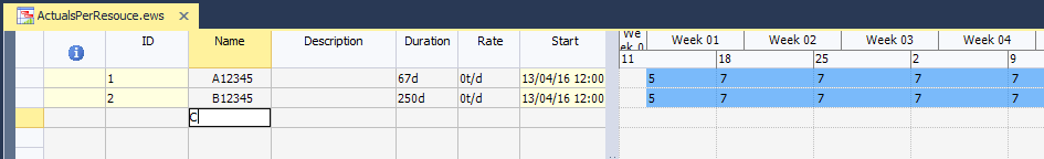 - Select the blank row at the end of the task table in the top half of the schedule window.