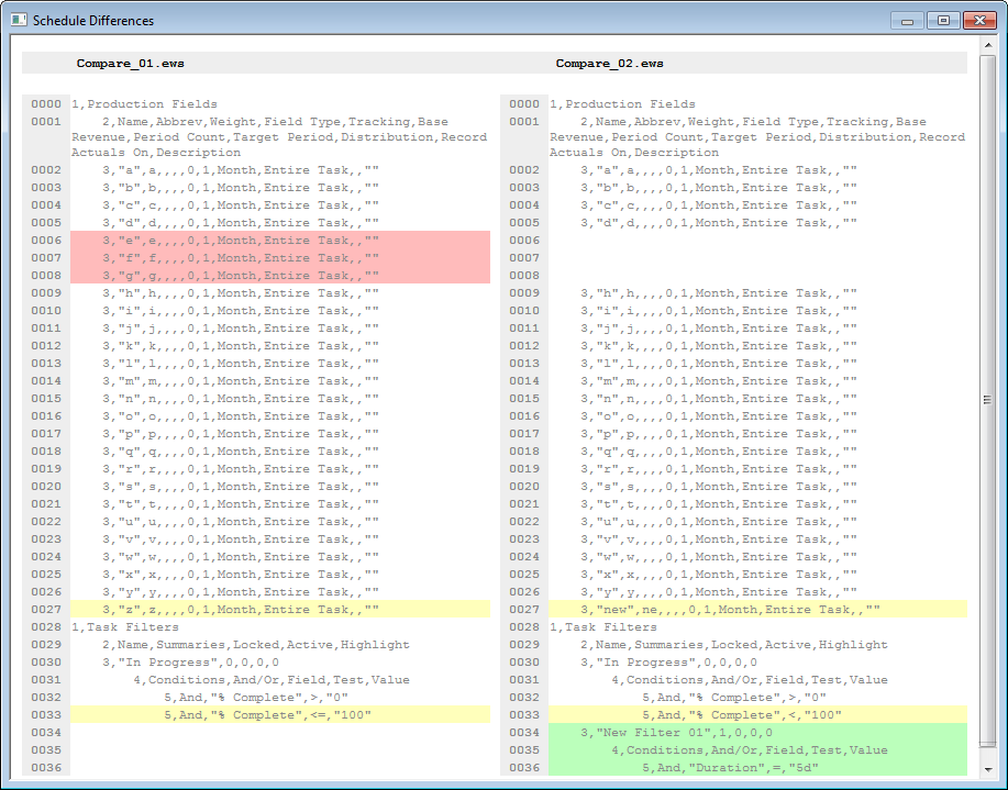 Note Beware of selecting all categories in large schedules, especially tasks and dependencies, as this can slow down the comparison dramatically.