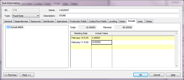 | Planned | The planned production associated with the defined task. |