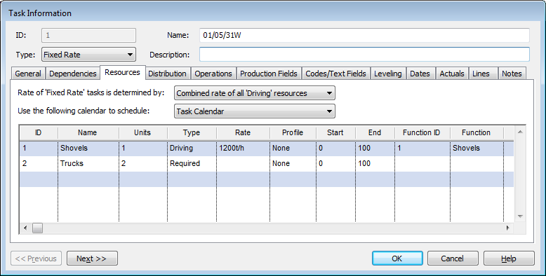 | Start, End | The assignment's offset from the start of the task as a percentage. These fields are not editable and may be changed by the levelling or optimisation algorithms. |