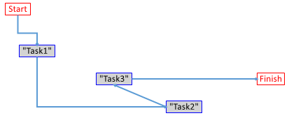 The Start and Finish default tasks indicate the scope of the work package. In the example, below, Tasks 1, 2 and 3 complete in a linear fashion, and Start and Stop indicate the scope of the package:
