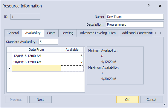 Select the Availability page of the Resource Information form.