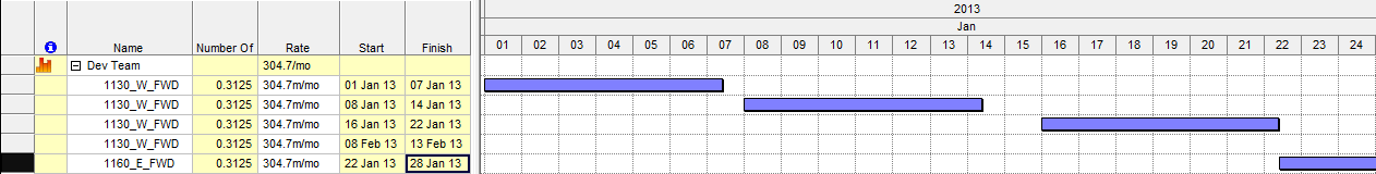 When you planning resource assignments, it is often helpful to display a Gantt chart of resources with the resource assignments for each resource.