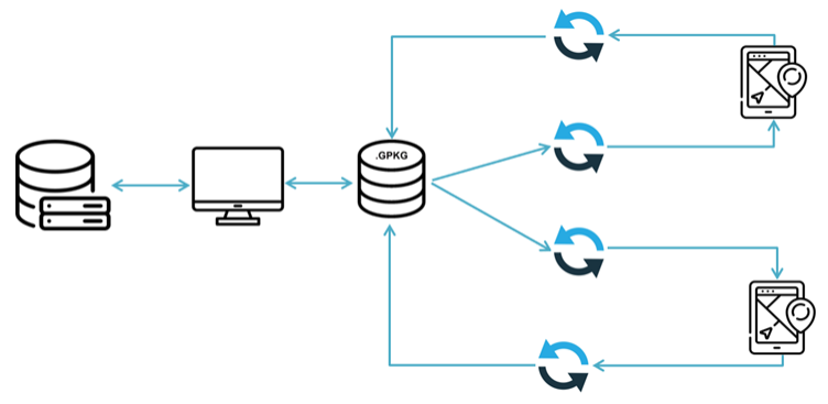 Once the Geopackage is created it can be saved to a cloud based folder like Dropbox which can be accessed via a mobile device or synced via the desktop sync tool to a mobile device that has Discover Mobile installed. The Geopackage can be synced to numerous different mobile devices, a record of what has been synced is recorded in the project log. The project administrator of the mobile project can see if any projects needs to be reviewed before re-syncing the data back to the desktop. The mobile user can now view and edit data in the field.