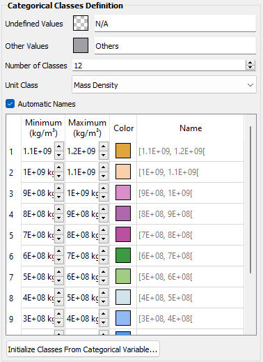 - Initialize Classes From Variable (optional): Select a variable to initialize the color scale with the unit class, the minimum and the maximum of the variable.