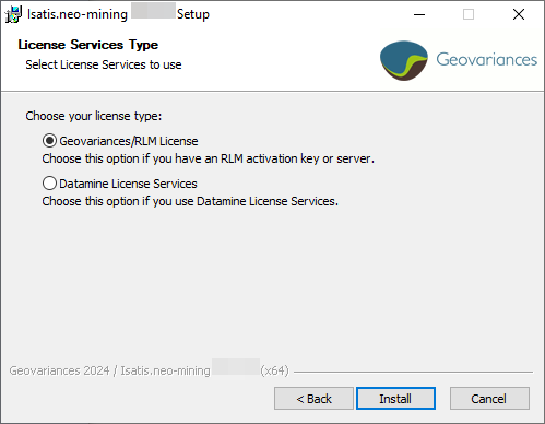 - Geovariances / RLM: for 16-digit activation keys or site/cloud licenses using the Geovariances License Manager.