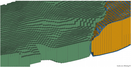 In Isatis.neo, block models are generally defined as regular grids, each cell corresponding either to a panel to be estimated or a SMU (Selective Mining Unit). To better fit the geometry of the deposit, a Sub-Block Model can be defined. This Sub-Block Model is useful to display the estimation or simulation results. The common practice is to first estimate or simulate the regular block model (parent cells) and then copy the variables from the regular model to the sub-block model. The sub-block model can also be estimated directly (see kriging module documentation).