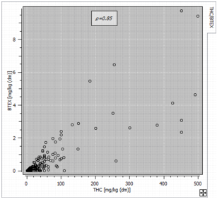 Cross Plot item shows a scatter plot between any pair of variables among the selected ones (or their Log10 transformation if the option Use log10 scale is activated), that is the representation of two variables in a X-Y diagram. Each sample, where both variables are defined is represented by a symbol whose coordinates correspond to the values of each variable. The two variables of the pair do not play a symmetrical role. The target variable (Y) is displayed along the vertical axis, whereas the horizontal axis corresponds to the conditioning variable (X).