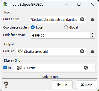 - Coordinate system: In Local, if MAPAXES is present, the origin stored in the keyword will be used as offset for the grid coordinates. In Global mode, MAPAXES origin is ignored even if it is present in the file.