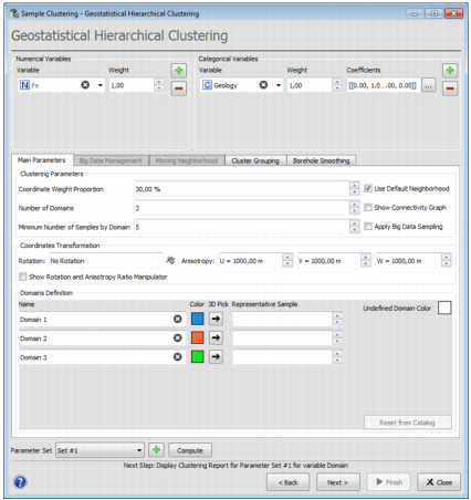 As a consequence if the Coordinate Weight Proportion is set to 100%, all the other variables are ignored during the clustering operation and if the Coordinate Weight Proportion is set to 0, the coordinates are ignored during the clustering operation.
