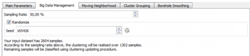 Note: This option is available if the toggle Apply Big Data Sampling is activated in the Main Parameters tab.
