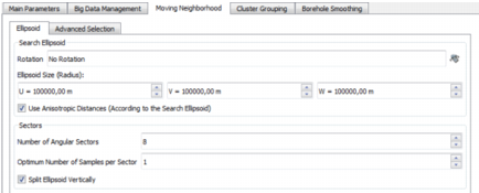 - Optimum Number of Samples per Sector: The search for samples in the different sectors is a sequential process. The application scans each sector at a time until it has been assigned an Optimum Number of Samples, if possible, within the ellipsoid.