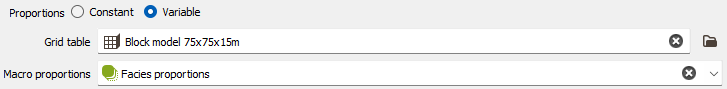 When this option is selected, Isatis.neo requires the definition of the proportions in each cell of the domain to be simulated, in the simulation grid. These proportions must be stored in a macro-variable which has to be prepared beforehand.