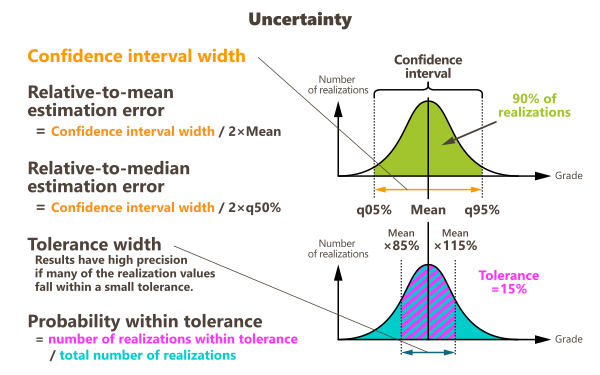 Uncertainty: This tab is visible only if a macro variable is provided as input. The following results are computed in two steps: the first step consists in calculating the upscaled mean for each realization, and the second step computes the requested quantity by considering the macro variable containing these upscaled means.