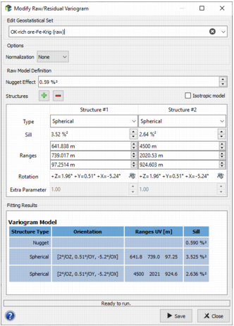 - Open Variogram Model Editor after the Run: This option enables the opening of the Modify Raw/residual Variogram window at the end of the run if you want to see and edit the variogram parameters to modify them. This window is also reachable from the Geostatistical Set explorer.