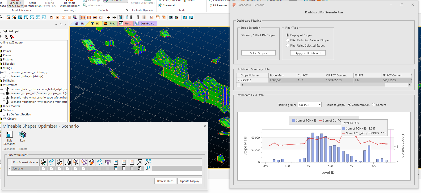 The MSO dashboard and associated stope data