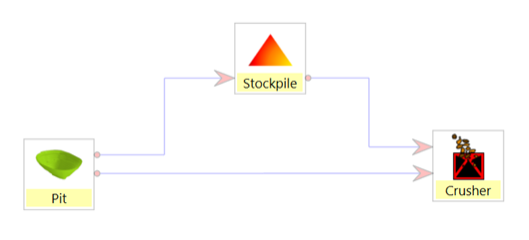 The important thing to understand about these variables is that only 2 and 3 are considered in process capacity constraints. The ramification of this on a holistic treatment of equipment constraints can be easily seen. If a TotalTruckHours process is defined to model truck hours and a maximum limit is entered, that maximum will only constrain the material going directly from both the pit to the process and the stockpile to the process and will NOT include the material from the pit to the stockpile. This is where calculated processes can play an important role.