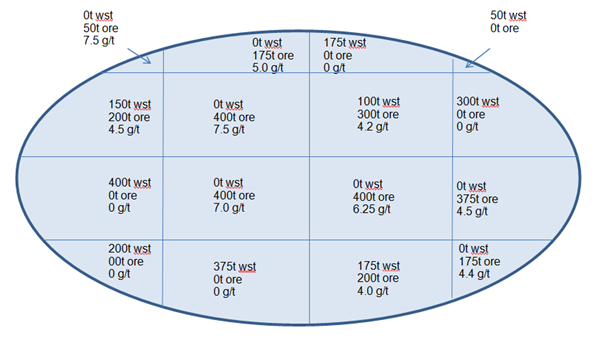 | Block | Mass | Mill | au | Waste |