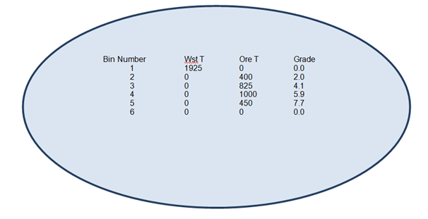 It is always good practice to define at least one grade bin for material that is known to be waste. As for ranges of the other grade bins it can be something of an art to decide grade ranges. One approach is to determine bin ranges that give equal tonnages of ore for non-waste material. Another is to identify cut-off and cut-over critical grade areas and have more total tonnage around these critical areas.