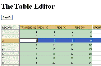 Clicking Next> will advance the selected row in the displayed Table Editor.