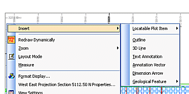 Locatable Plot Item: inserts a plot item (to be selected from the Plot Item Library) that will be linked to a specific point within a section, or the point where a 3-dimensional line intersects one or more sections.