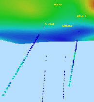 You can turn on both model and color rendering together, for example, choose the Cube.x model in the Edge Model box, and render static drillholes by an attribute field - the drillhole will appear as a color rendered box (see samples below).