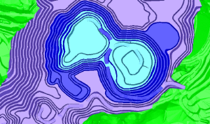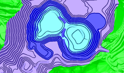 Key spurs are similar to a crest or valley spur, but are generated when some of the boundary edges may not have adjacent triangles (on the edge of the resulting model). Note that no adjustment value is possible with this setting; the algorithm will dynamically assign the height to a value between the contour levels as it moves along the spur skeleton polyline.