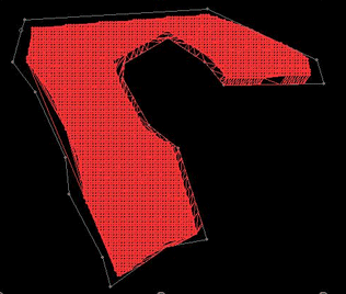 Consider an example where a boundary string object has been digitized, as shown by the image on the left. If that string object was selected as the boundary, and Inside boundary strings checked, the resulting DTM mesh would be as shown on the right: