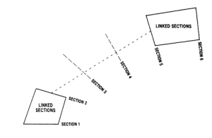In the majority of cases the sections on which the structures have been defined will be parallel. If this is not the case then it is assumed that the sections are perpendicular to the strike, as illustrated in the plan view in Figure 6, below - that is, all points on any given section have the same `along strike' (UCSC) coordinate.