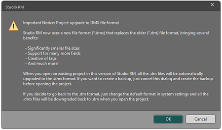 DMX project files are expected. Although you can read DM files and still write them, files in your project folder are automatically converted to DMX format when your product opens.