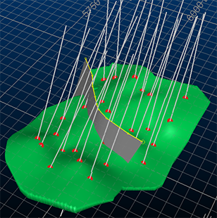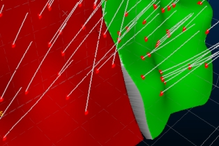 However, fault extension will occur to all aspects of the fault, meaning all wireframe sheets are fully extended along a surface trend all the way out to the data boundary (a cube wrapping the input positive samples. This could cause unexpected faulting to occur if multiple wireframe sheets terminate within the area of positive samples representing the structure.