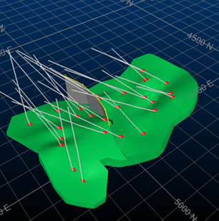 Wireframe sheets are used to differentiate independent blocks of data. These 'fault blocks' are modelled to mimic the natural outcome of material shear/thrust.