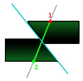 However, fault sheets can terminate within a fault block. In this situation, the fault throw is gradually reduced to zero up to its terminus, allowing a 'scissor fault' to form, for example, the green fault block below is partly intruded by a fault sheet: