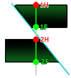 In this case, the upper HW and FW samples (1H and 1F) will contribute to the volume created on the right and the lower HW and FW pair (2H and 2F) are used to construct the fault block on the left.