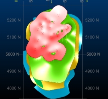 The Create Vein Surface task is a focussed tool for the calculation of hanging wall (HW) and/or footwall (FW) surfaces that represent vein or vein-like lodes. Similarly, the Create Contact Surface task is used to generate contact surfaces between groups of contiguous categorical values.