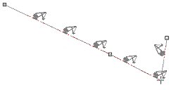 • Smooth Corners: this option will calculate the shape of a smoothed line, based on the current line on which to add feature symbols. This is particularly useful if the Rotated option is set and a more gradual change in symbol direction is required than that dictated by the shape of the line.