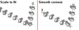 • Smooth corners: select this option to modify the symbol placement during angle changes for a smoother fit, e.g.: