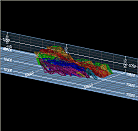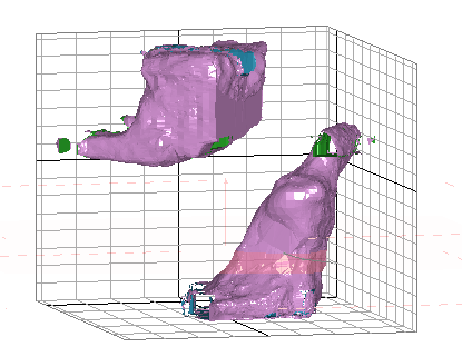 Grids typically indicate dimensions along the axes of the data display. One of the limitations of a standard flat grid is that it is often difficult to sense or interpret the extent of a 3D data object in a direction that is not orthogonal to the view. In the past, this conundrum has been resolved by allowing non-orthogonal grids to be viewed in the Design and Plots windows, and this type of measure is a very useful aid for denoting a measurement that is perpendicular to the viewing direction. For example;
