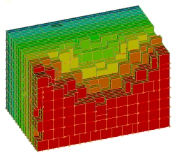The Prism method also requires a stope-shape framework, but uses the decomposition of the framework extents to define sub-problems. The framework extent is subdivided in regular intervals, much like regular quadrilaterals, except that the subdivision is three dimensional rather than two dimensional, and each subdivided volume is referred to as a region, whereas the Slice method subdivision is two-dimensional to form a tube. Stope-shapes are defined as a fixed set of shapes defined by the footprint and height, and the optimization problem is defined as identifying a combination of non-overlapping stope-shapes from the set provided to maximise value or grade within each independent region.