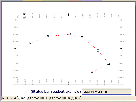 Measurement is achieved by digitizing a 2D string, including as many points as are necessary. The resulting cumulative distance measurement is shown after each mouse click. The line that is shown on screen during digitizing is temporary; it will not be visible in your presentation (and is removed after the measurement operation is complete).