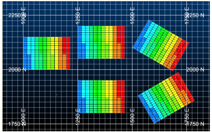 The XC, YC and ZC fields in a rotated model file hold the cell centre coordinates for the local (rotated) grid. It is sometimes helpful to see the corresponding coordinates in the world (normal) grid. When using MODTYPEs 2 and 4 the COPYMOD process allows the world coordinates to be added to the output model. This is done by specifying names for the coordinate fields - *XWORLD, *YWORLD and *ZWORLD.