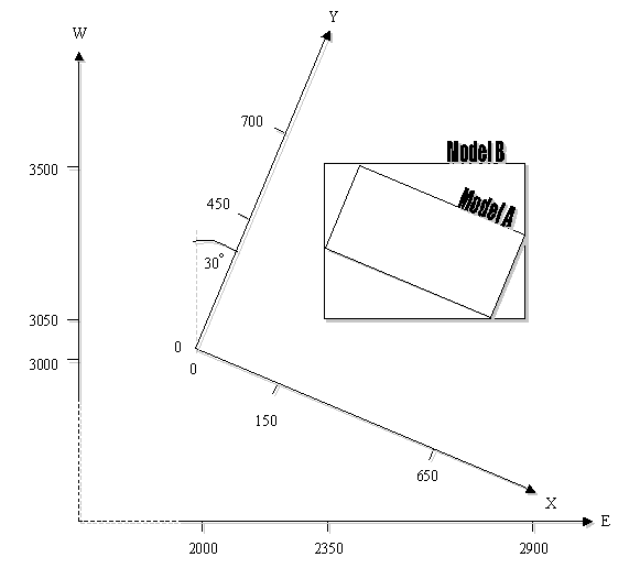 MODELA uses the X-Y grid axes; MODELB uses the E-N grid axes.