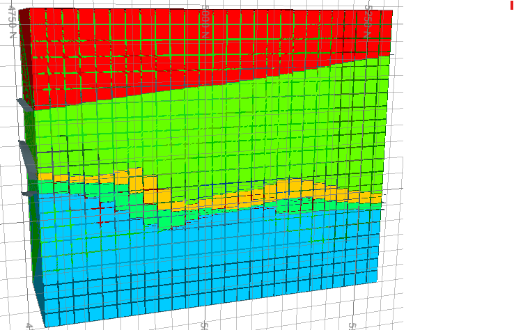For example, in the image below, the generate model includes coding for the GEOLOGY attribute's domain values and a separate attribute recording the relevant fault block code for each cell: