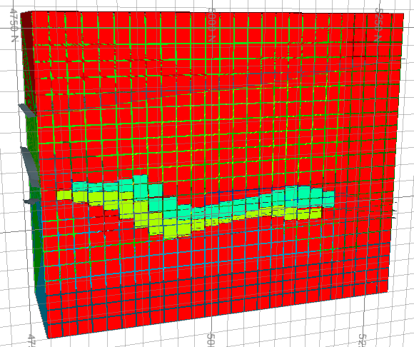 Re-run all workflow tasks and, again, review your block model in relation to the other structures.