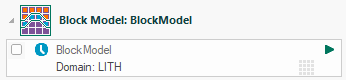 Once a Block Model task is run, it appears as a workflow item. If domain tasks were run beforehand, or fault blocks were generated, the block model encodes them automatically.