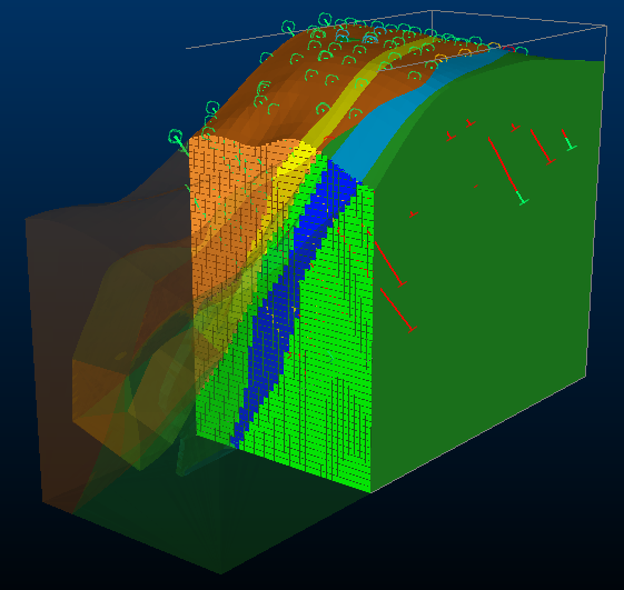 The Dynamic Modelling workflow can incorporate a task to generate a block model representing geological structures. These structures are represented by attribute coding within the output block model.