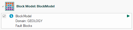 A Block Model task showing both a modelled domain (GEOLOGY) and encoded fault blocks