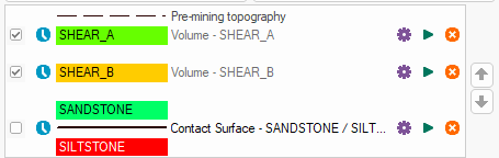 As another example, in the image below, two cross cutting veins are modelled (SHEAR_A and SHEAR_B) but the contact surface (SANDSTONE | SILTSONE) is no longer required, so it is unchecked: